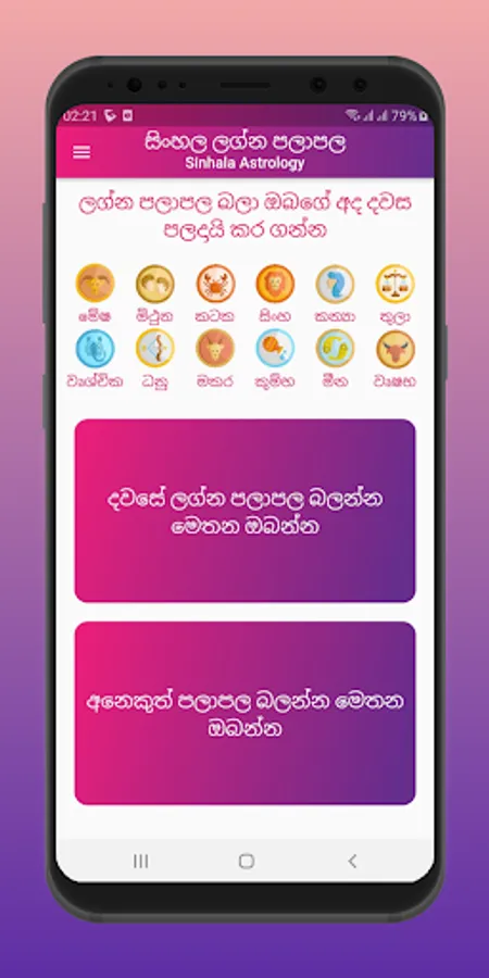 කිසිඳු මාසික හෝ දෛනික අය කිරීමක් නොමැතිව දවසේ ලග්න පලා පල බලන්න. මෙම යෙදුම 100% නොමිලේ පල කරන්නකි.