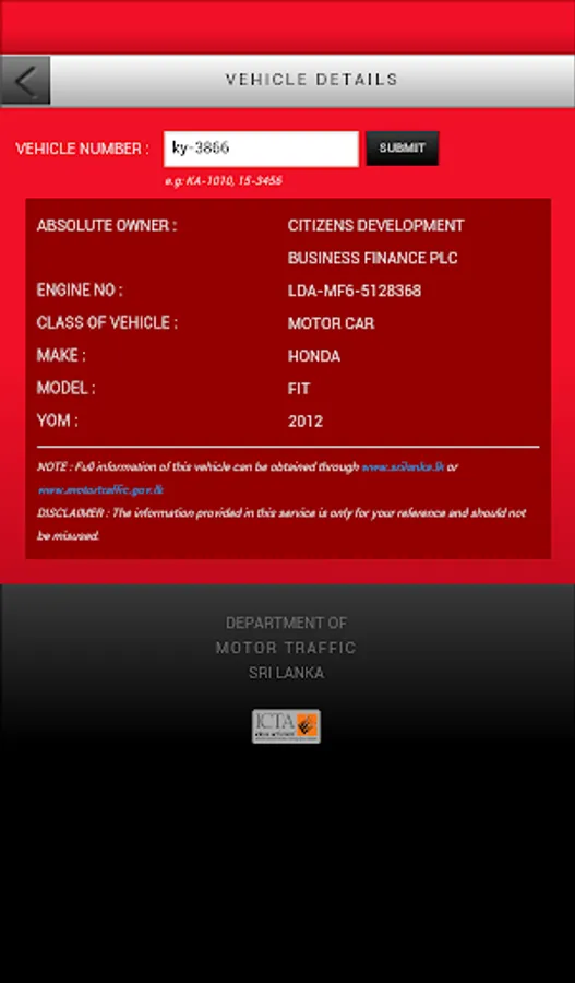 Find details of the vehicle and its owner , just by entering its NUMBER PLATE details.
