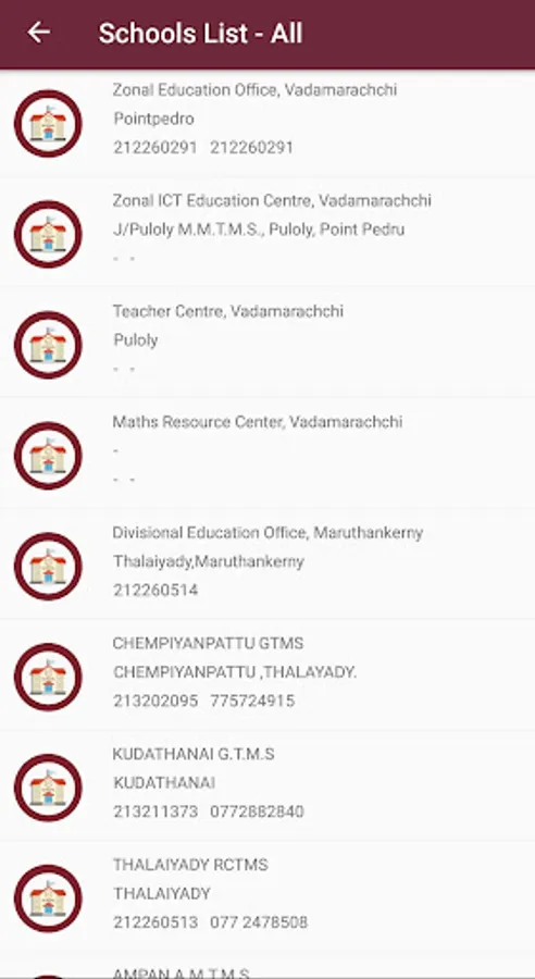 Staff and contacts of relevant institutions comes under the purview of the Ministry of Education, Northern Province.
