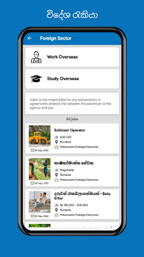 The related website is jobin.lk and is exclusively reserved for employers or employers. Thus, all the job advertisements posted by the employers on the website will be automatically added to the mobile phone application at that moment.