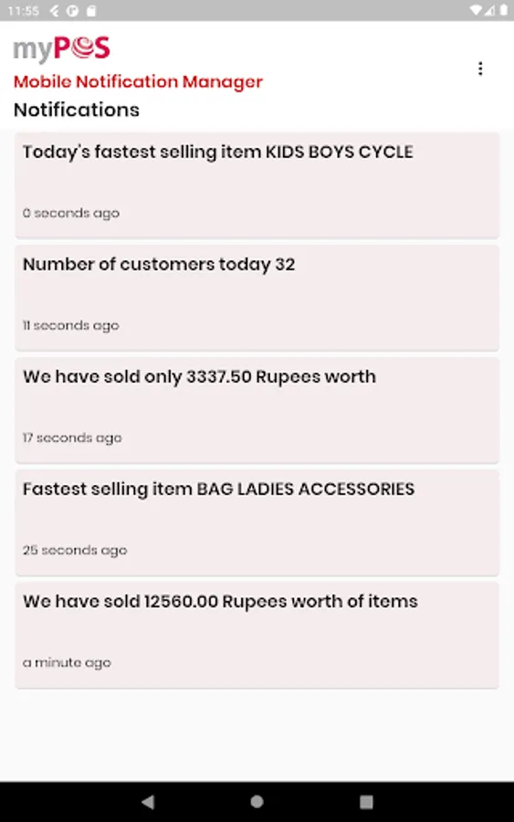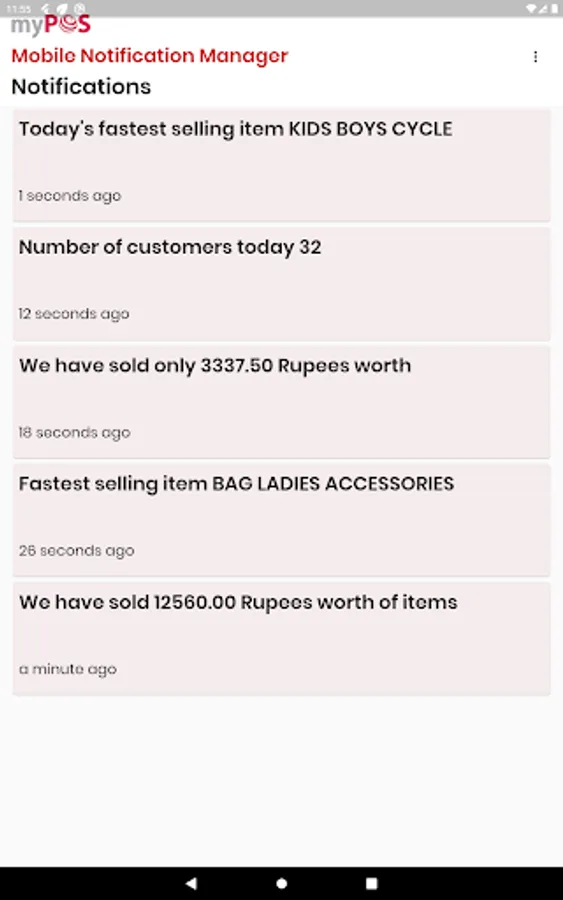Stay at home or on the move, know what is happening at your store. Check sales, stock balances, target achievements, special activities, and many more, automatically sent your mobile phone by the system. myPOS alert module will keep you informed based on your choice of information at times defined by you. No more calls to the manager to check sales!
