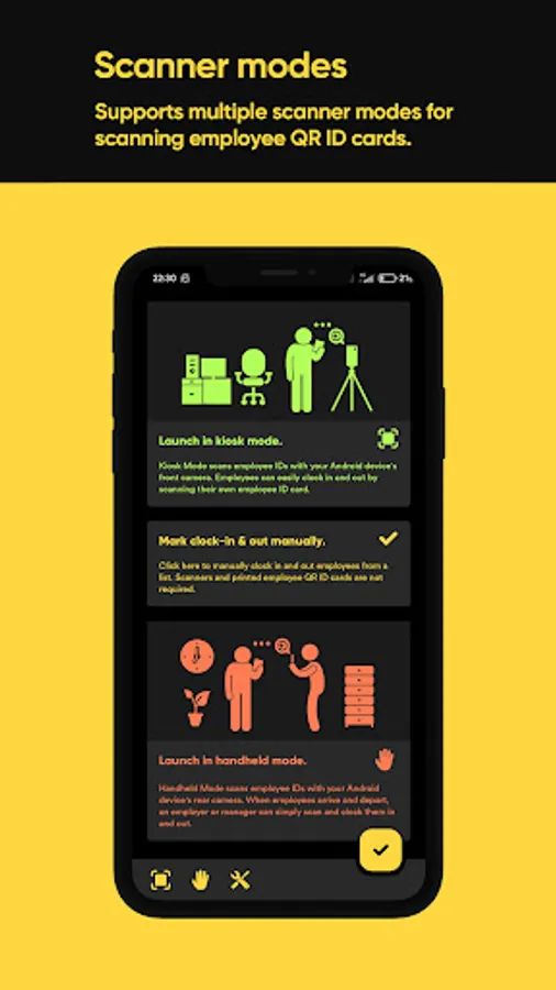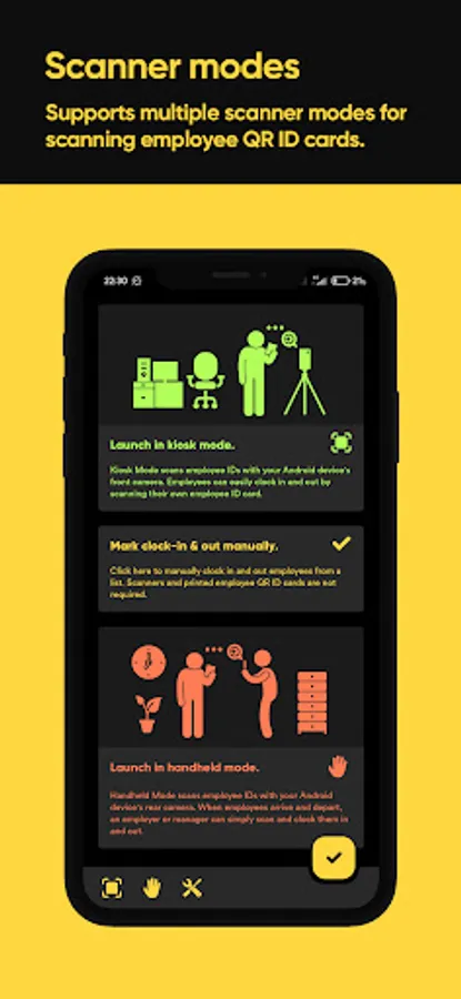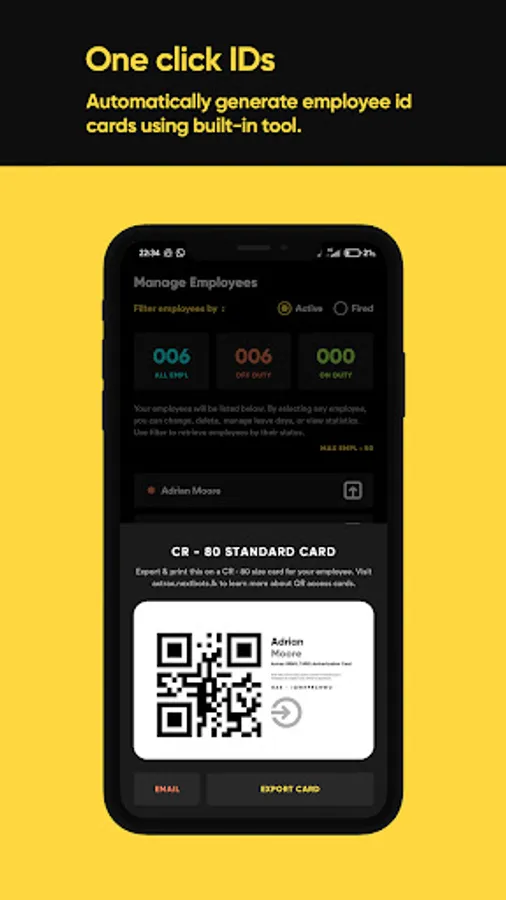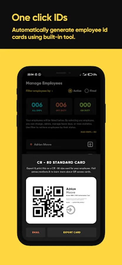 Everything will be done on an Android smartphone or tablet. Axtrax will convert your device's existing camera to scan employee QR code ID cards and even design the employee ID cards itself.