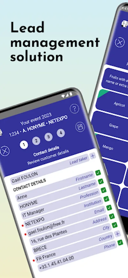 fasteLeads is a solution for exhibitors during events (like tradeshows, congresses, and shows) to easily collect contact details and products interest.