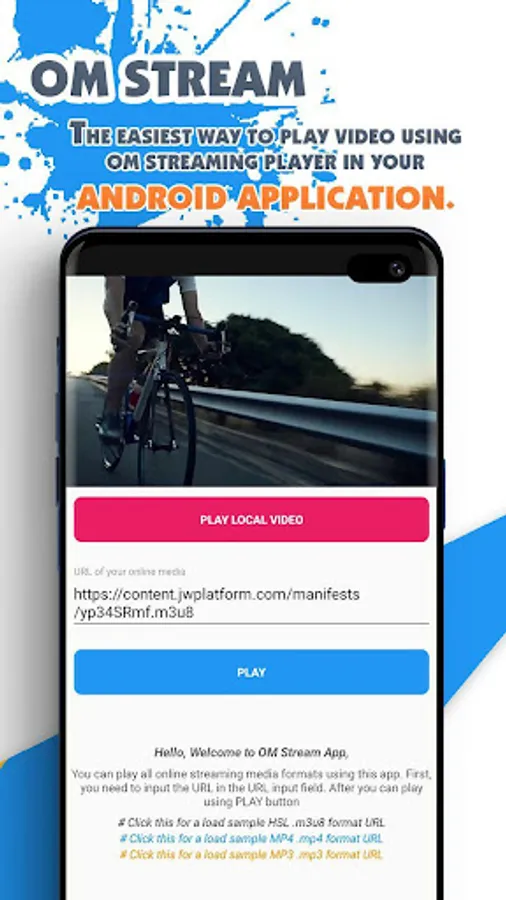 The Easiest Way To Play Video Using OM Streaming Player In Your Android Application. Just Pass Your Url Or Local Video Address To The Player.