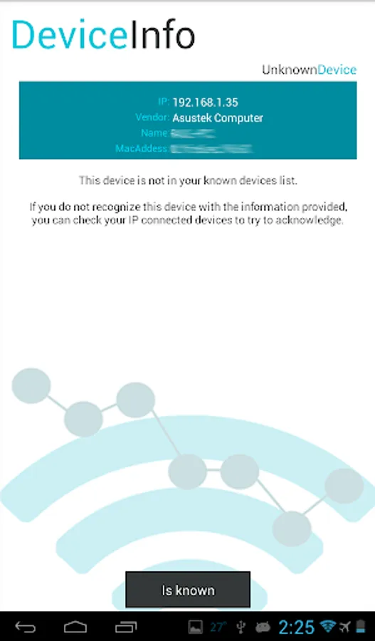 Wifi Inspector also allows to save a list of known devices with custom name and find intruders in less than 30 seconds. This makes it easier for us and you will not need to go checking the data whenever we make a scan.