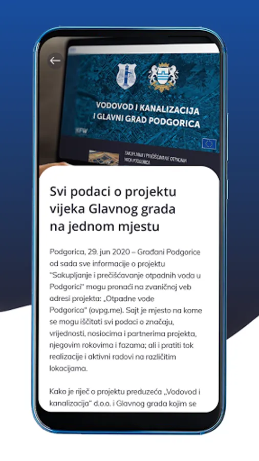 Application thanks to which it is possible to monitor the implementation of the project "Collection and treatment of wastewater Podgorica". All data on relevant aspects for citizens are in one place: