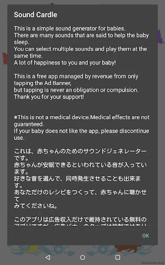 ※This is not a medical device.Medical effects are not guaranteed.There are individual differences in the effect of this application.Please do not let the baby hear the sound of the application with earphones.