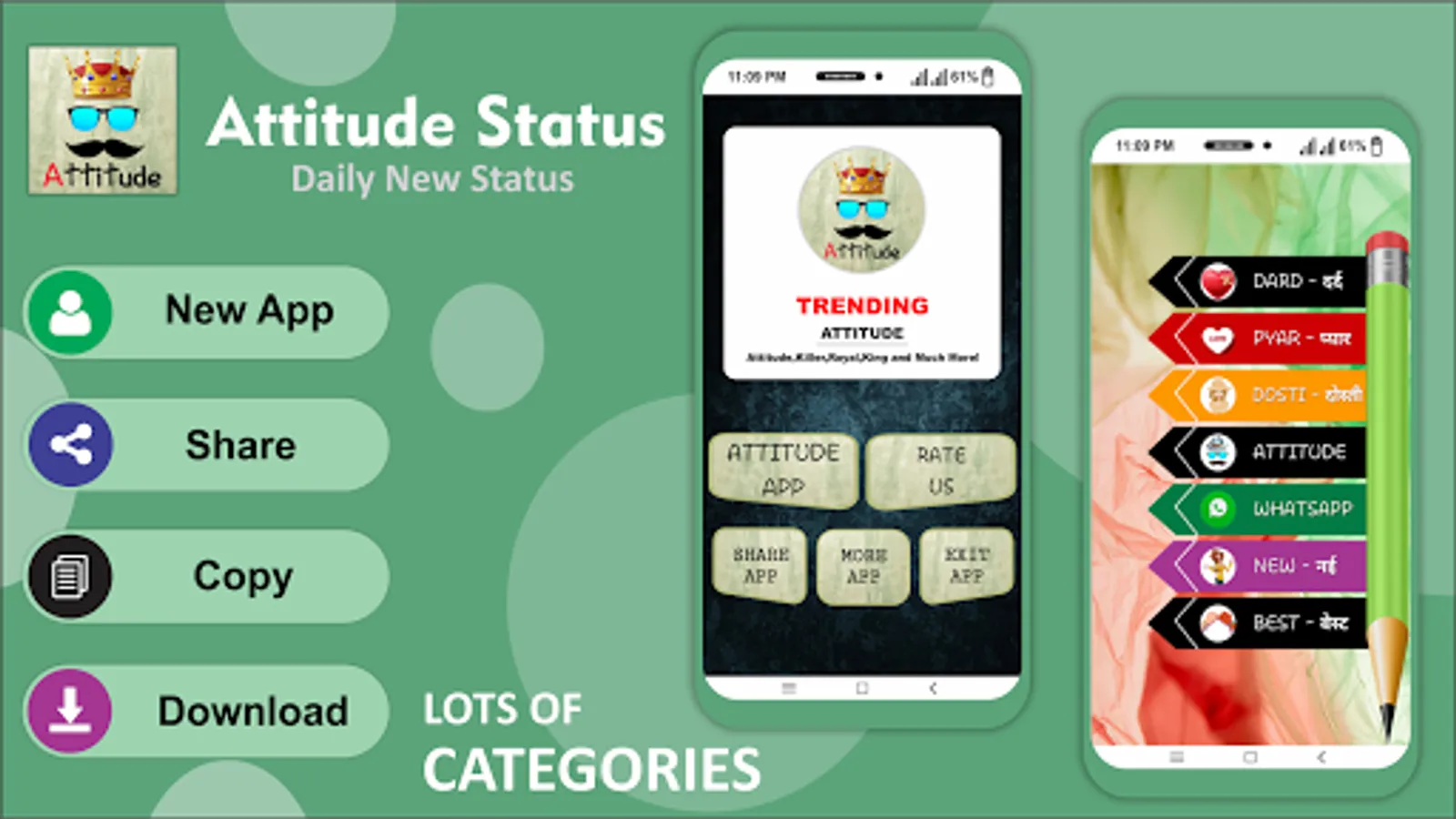 Attitude Status Hindi, SMS, Shayari, Status & Quotes Collection app contains best collection of Best New Attitude Status in Hindi.