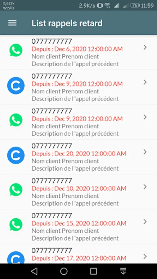 • "Read call log" to read all your call logs, which is necessary to import the numbers of the customers you have called and to schedule a commercial action as a callback or mark them as interested or not.