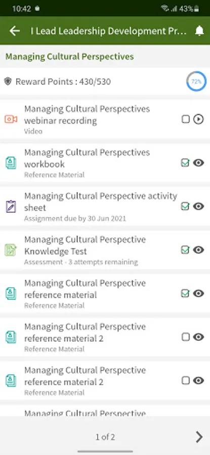 - Provide individuals action leaning with behavior indicators, Text/audio/video content, Knowledge test, 360 feedback
