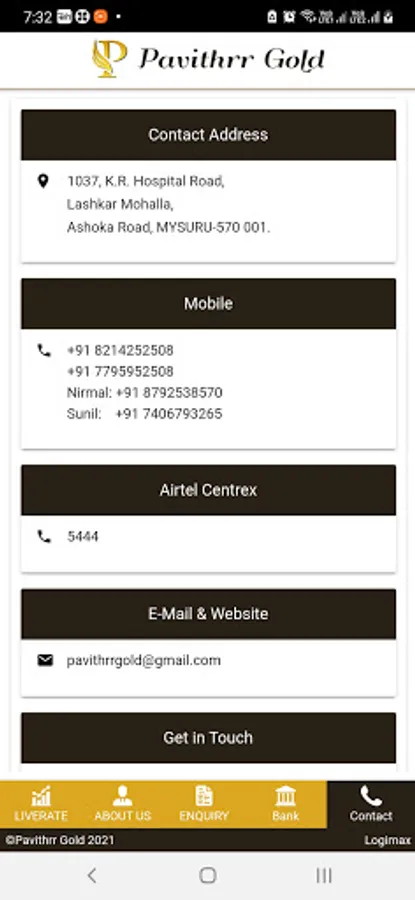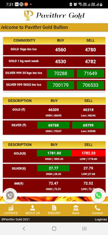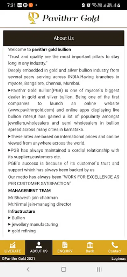 Pavithrr gold bullion(PGB) is one of mysore's biggest dealer in gold and silver bullion. Being one of the first companies to launch an online website (www.pavithrrgold.com) and online apps displaying live bullion rates,it has gained a lot of popularity amongst jewellers,wholesalers and semi wholesalers in bullion spread across many cities in karnataka.