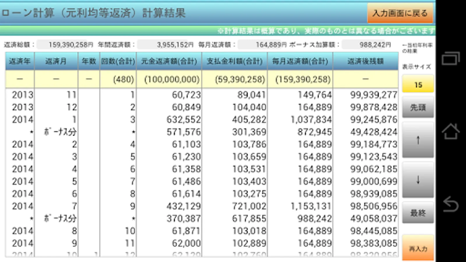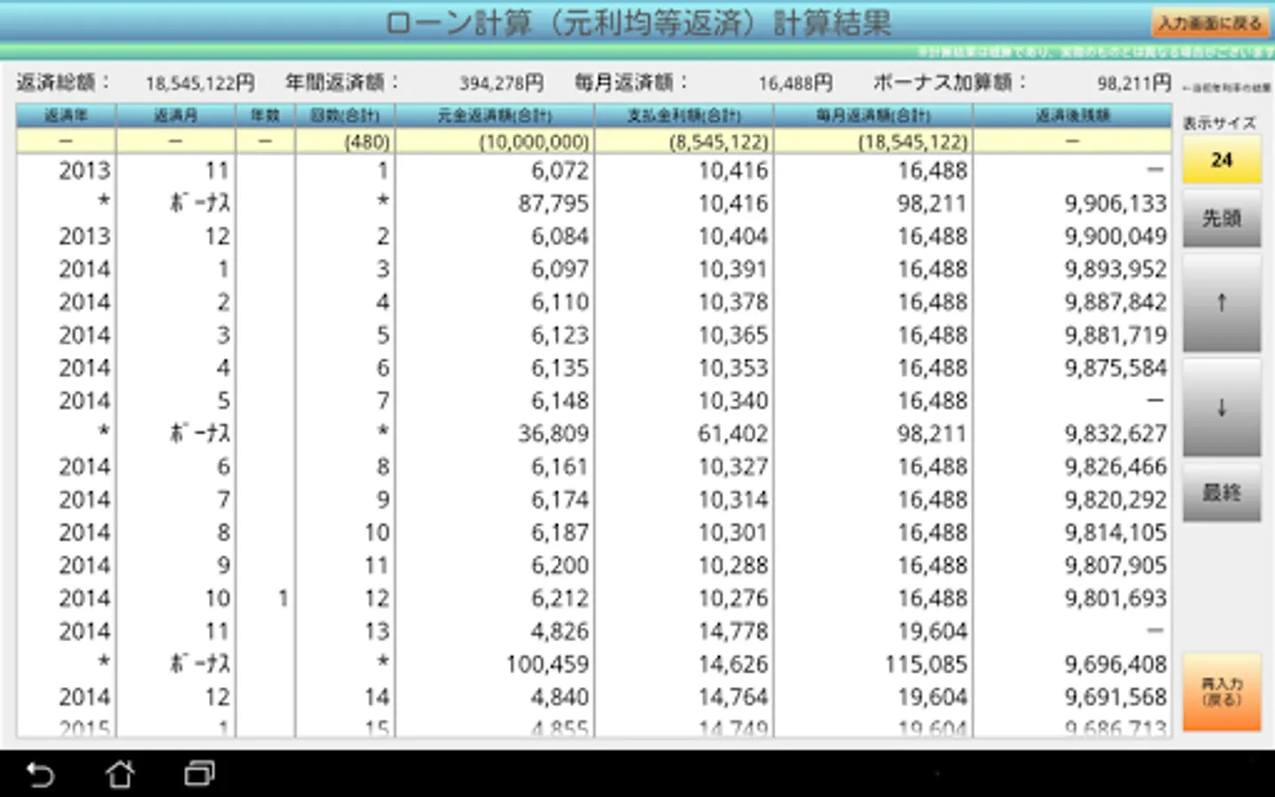 アプリケーションの計算結果は、実際のものとは異なる場合がありますので、参考値としてください