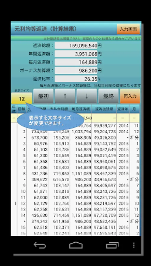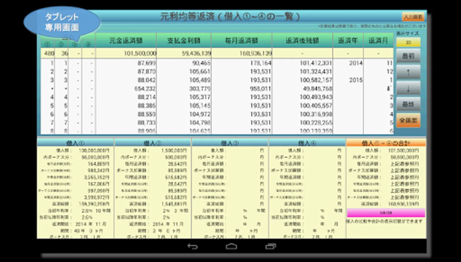 ・ローン計算(金融電卓)体験版(1.0.3)をもとに、表示/機能などを改善したアプリになります