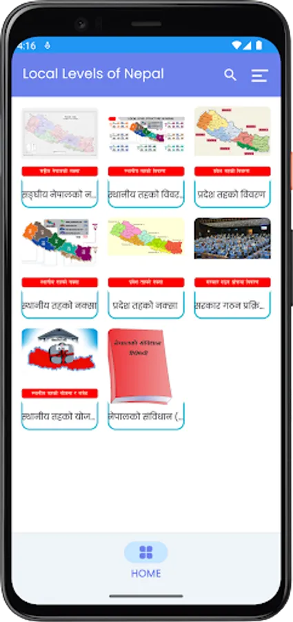 Local Levels Nepal(स्थानीय तह) App is a mobile application designed to provide users with an interactive and user-friendly map of Nepal that focuses specifically on local administrative units known as "local levels." This app aims to assist users in navigating and exploring various local levels, districts, municipalities, and wards within Nepal.