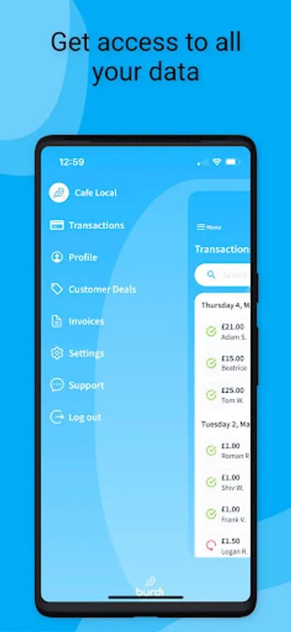 Reward your loyal customers by accepting payments with Burdi's Merchant App on your mobile phone.