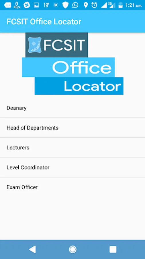 The project aimed to design and develop FCSIT Office Locator for the Faculty of Computer Science and Information Technology, which can efficiently guide new students and lecturers who visit Faculty of Computer Science and Information Technology for the first time without asking for directions and gets accurate information