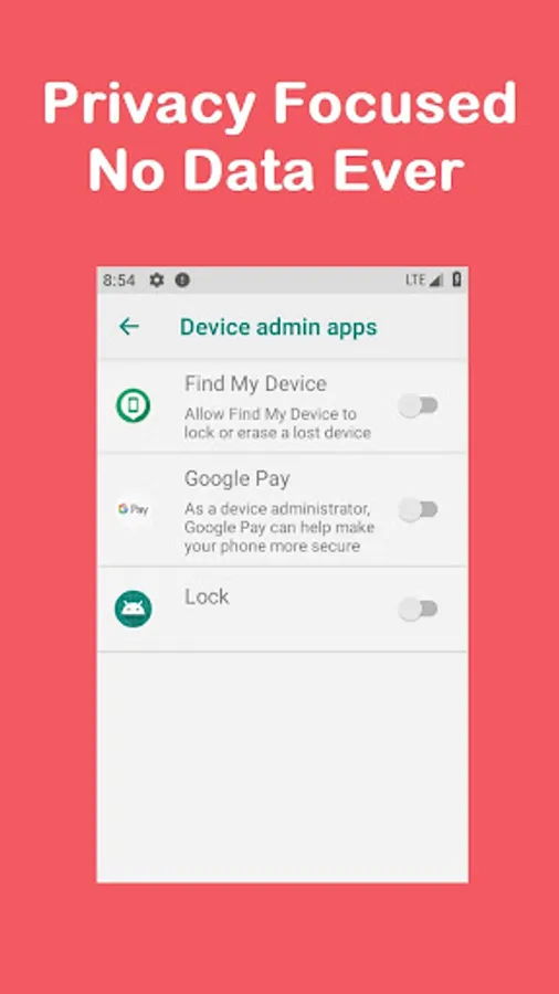 ➤ When activated, the app will lock the screen and then kill itself