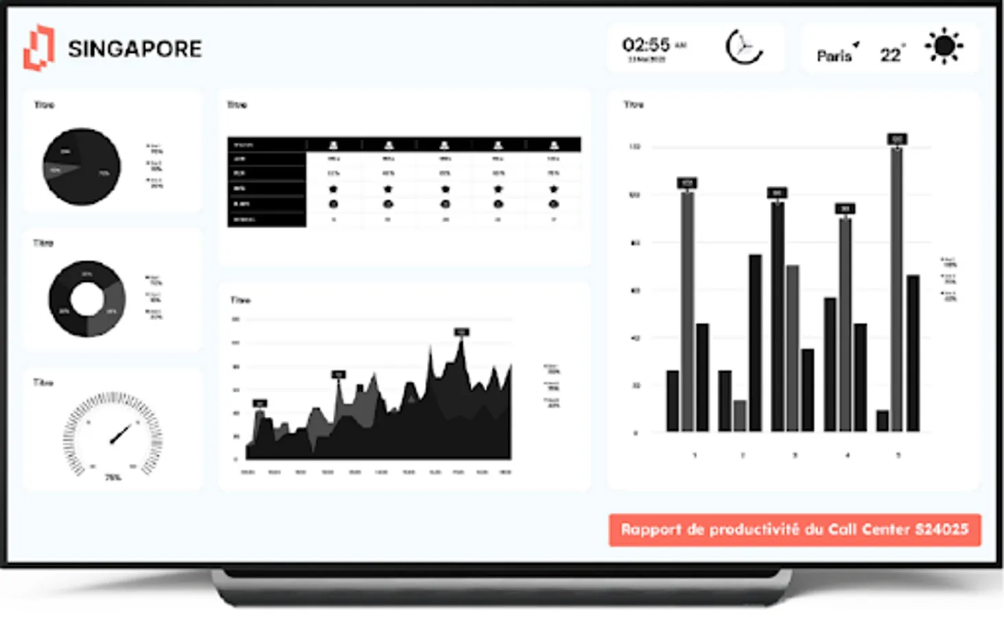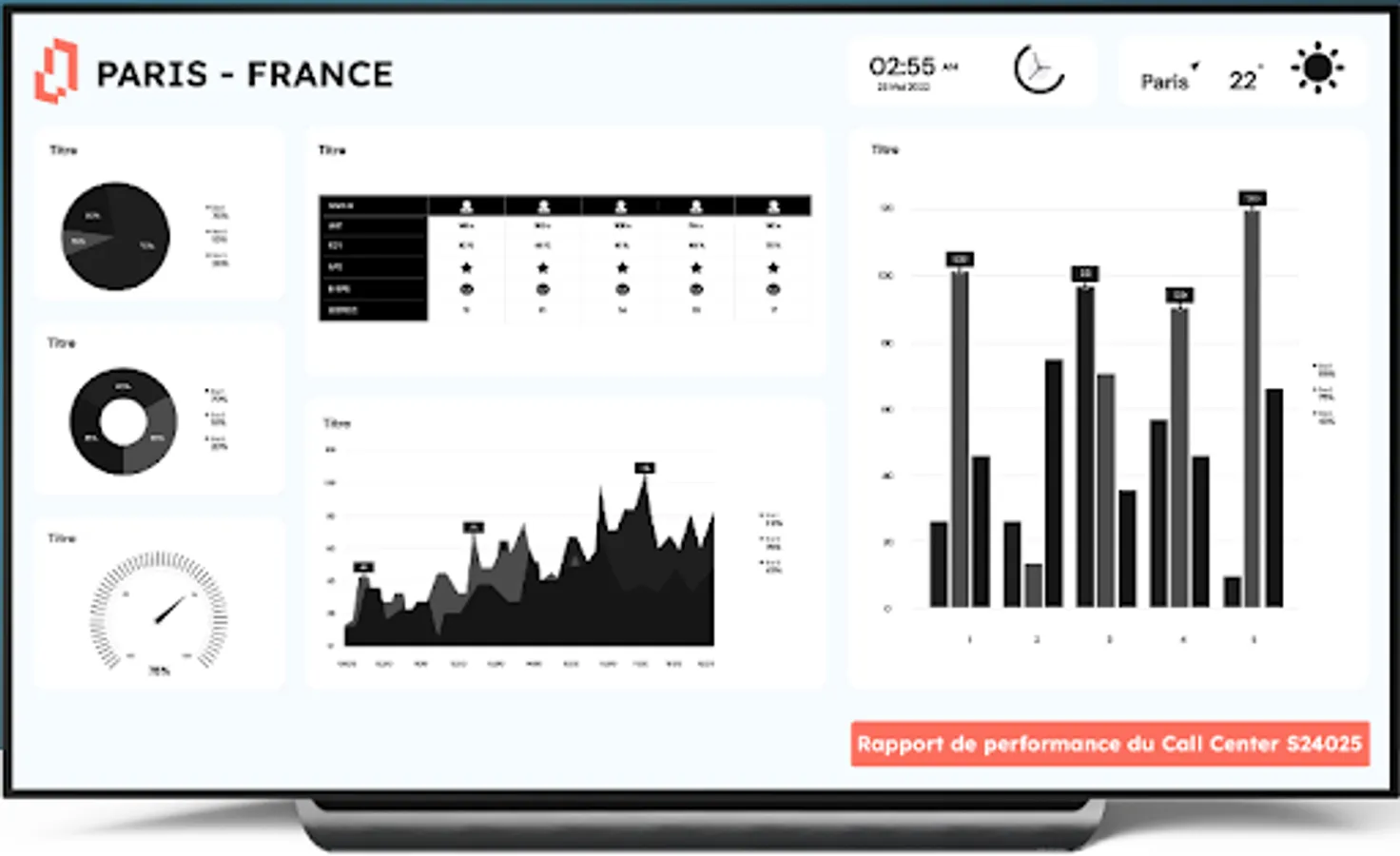 LogePal TV is an application that makes it easy to display your customer relations KPI's on Android TV. The solution meets the requirements of customer relations professionals by offering the ability to manage activity in real time, lead teams and analyze performance.