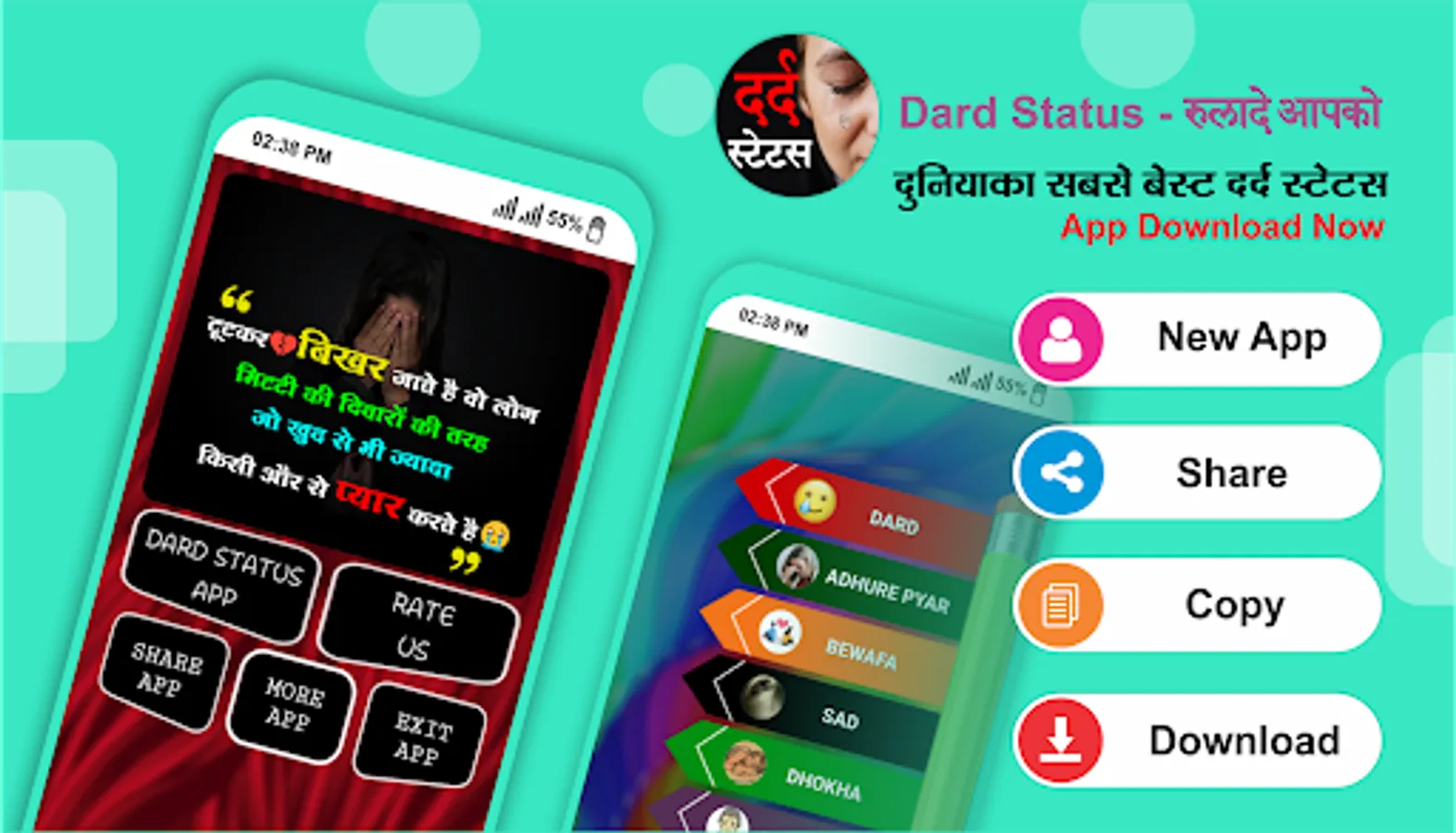 Dard Status Hindi, SMS, Shayari & Quotes Collection app contains best collection of Best Status in Hindi.
