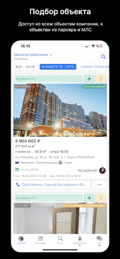 - Access and search in the "Parser" section (with the ability to add objects to your personal account)