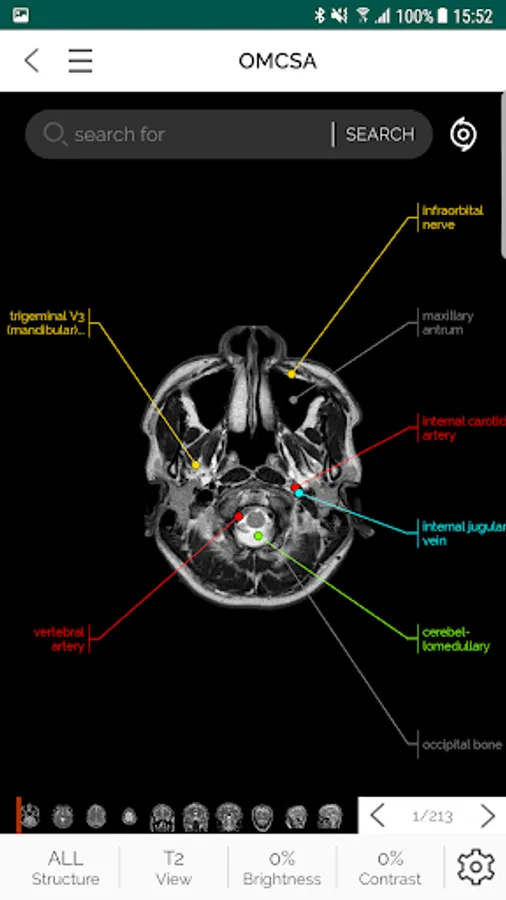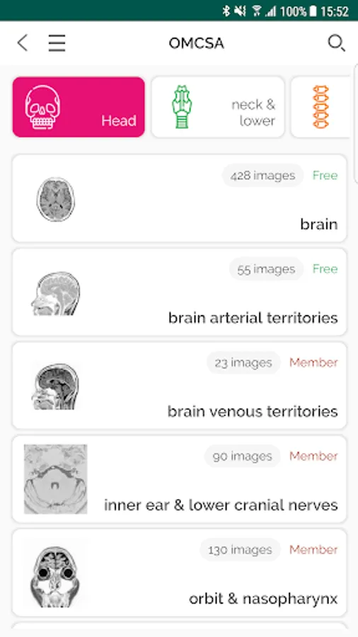 Online MRI & CT Sectional Anatomy (OMCSA K-anatomy) is probably one of the most user-friendly and convenient online interface for human anatomy atlas. Anatomies like brain, temporal bone/internal auditory meatus, nasopharynx, orbit, paranasal sinuses, cranial nerves, temporomandibular joint, neck, brachial plexus, spine, shoulder, arm, elbow, forearm, wrist, hand, finger, thumb, thorax/lung, coronary arteries, abdomen, pelvis, hip, thigh, knee, leg, ankle, foot, angiogram, etc. are included.