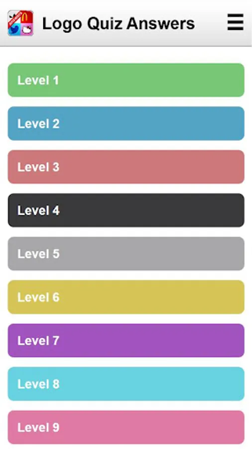 This app also includes answers for Extra Levels: Colors (600+ logos is coming soon), Food (100+ logos), Slogans (200 riddles), Minimalist (300 logos), Expert (1000+ logos).