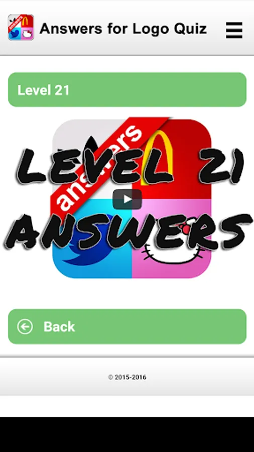 Answers for more than 1000 logos are available at your fingertips. (including newest levels 19, 20 and 21)
