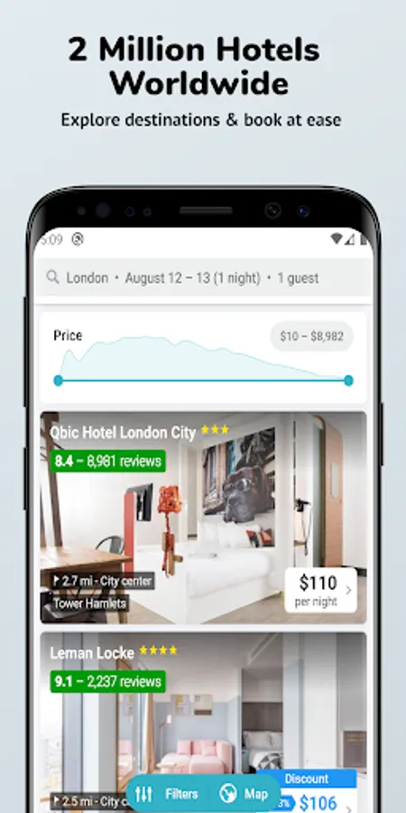 Budget hotels app helps you to find the best budget hotels around your location. You can search and compare all budget hotels at your location with a single app. You can just go through availability and prices from all top travel websites and get the best hotel booking deals and hotel offers for you. All major hotel providers give you a free cancellation policy for most of the rooms. This app saves all the hassle of searching through various hotel booking websites.