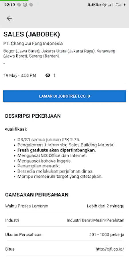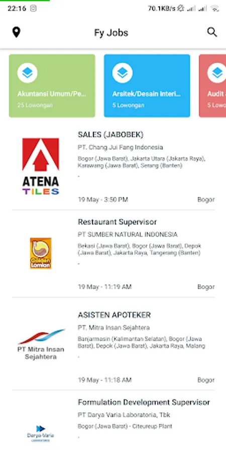 Application Fy Jobs or Job vacancies help to find job vacancies in the area of Bogor Jakarta Depok Sukabumi easily, job vacancies are taken from several job provider sites.