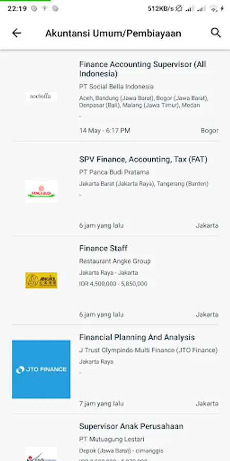 Job vacancies for Bogor, Depok, Jakarta, Sukabumi.