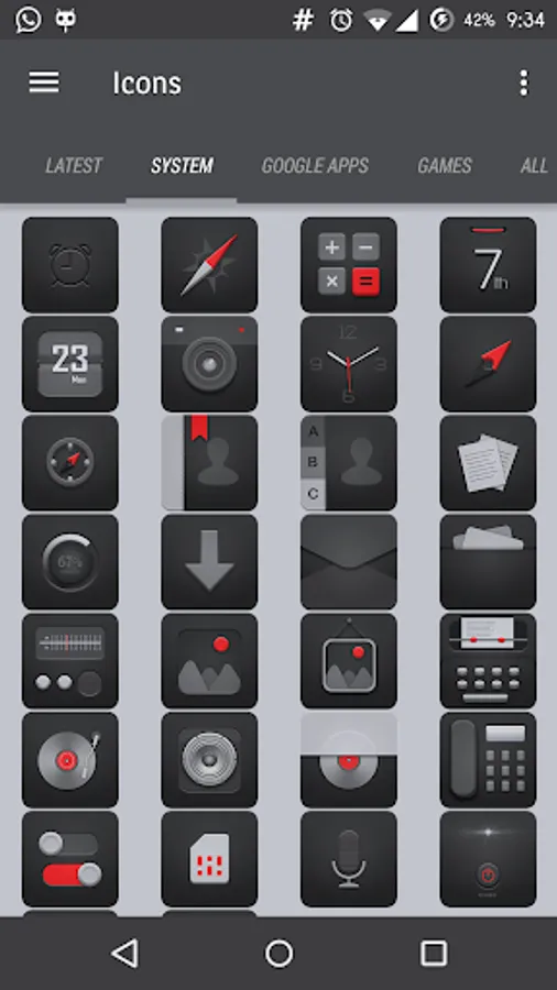 These icons are made using shades of one single greyish color and a little red color. Design of icons is very different from other icon packs available online. It has a 3d'ish feel to icons with a little grain effect on top.