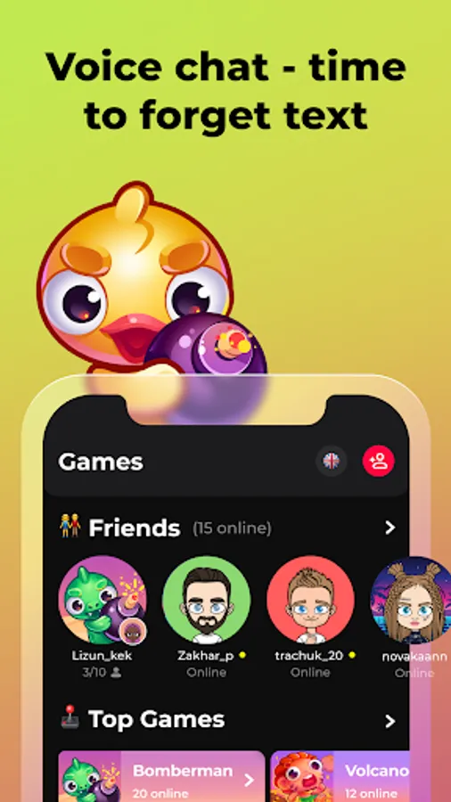 Omgplay is an app that allows you to play various casual games with friends via voice chat. Join the community, create an avatar and start playing now!