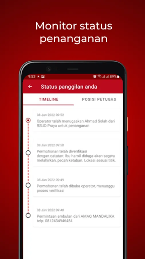 This application was created to make it easier for people who live in Central Lombok Regency to report emergency events that require medical assistance (ambulances).