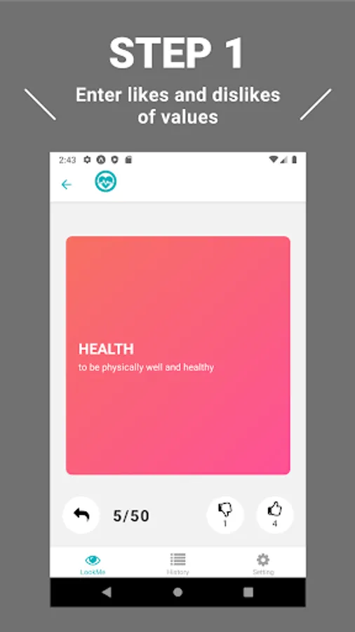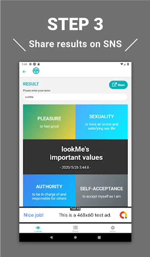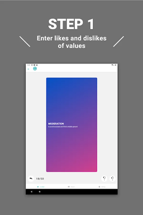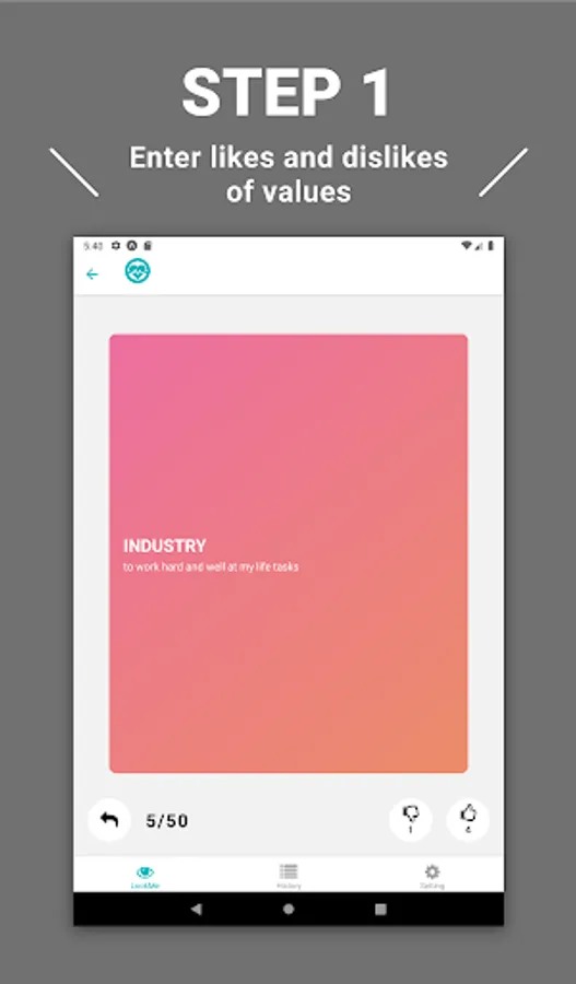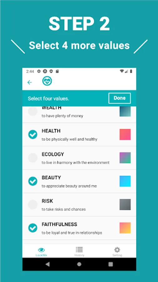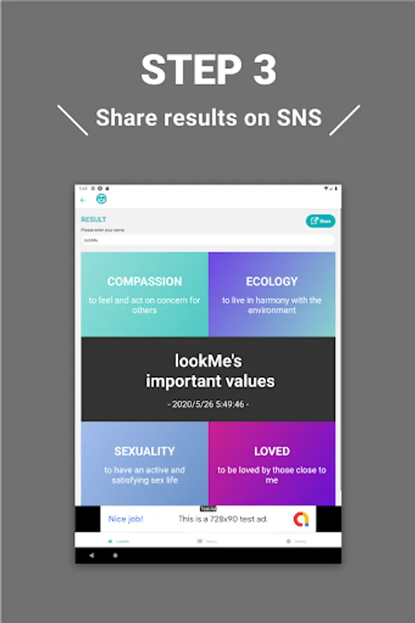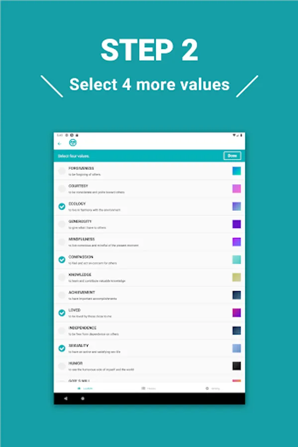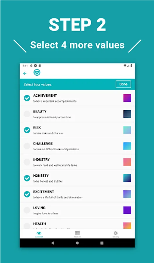 You proceed to select your values likes and dislikes, and eventually you will be presented with a picture consisting of the four values that are important to you.