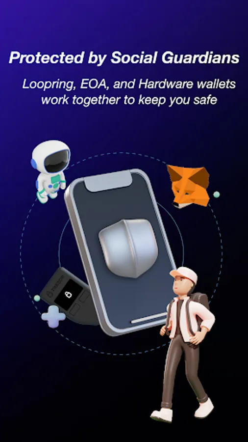 Social recovery with Guardians: trusted contacts help you protect and recover your wallet should you ever lose your mobile device. No Secret Recovery Phrases to remember or risk losing.