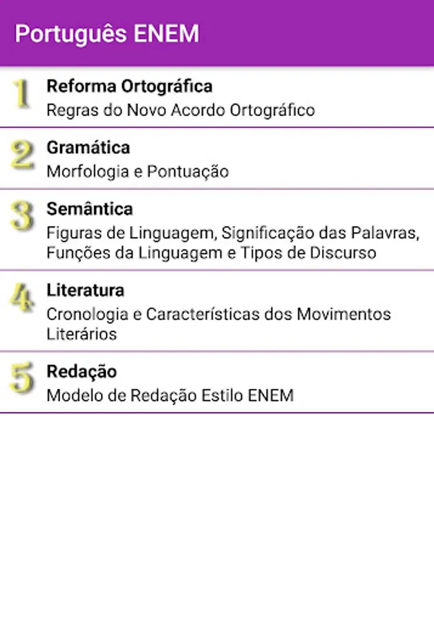 With a simple and fast interface, the application covers the Portuguese content of high school. Without requiring connection to the network, the application can be accessed at any time anywhere, assisting and preparing you for tests and entrance exams.