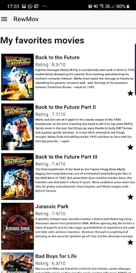 This app allow you to see in theater movies and add any movie as favorite so you can save it for later when you'r not connect to the internet. You can search any movies by name and year and it will give you the 20 most popular.