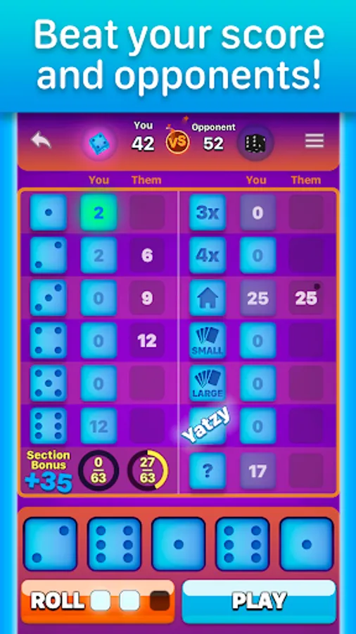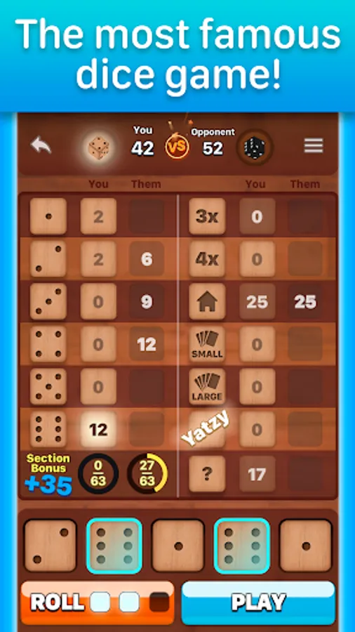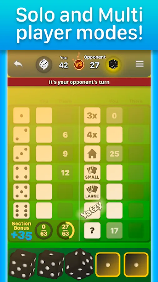 🎲 Play versus Opponent - with AI opponents you will definitely challenge your mastery of the yatzy gameplay