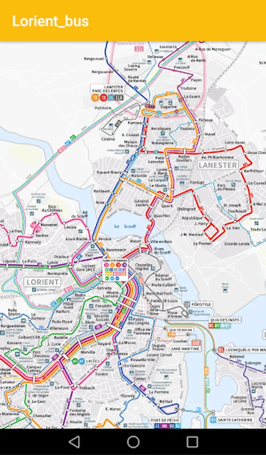 Map of the city of Lorient network with bus lines. Useful for viewing your connections in the city. Avoids the misuse of paper that ends up on the streets of our beautiful city ;-)