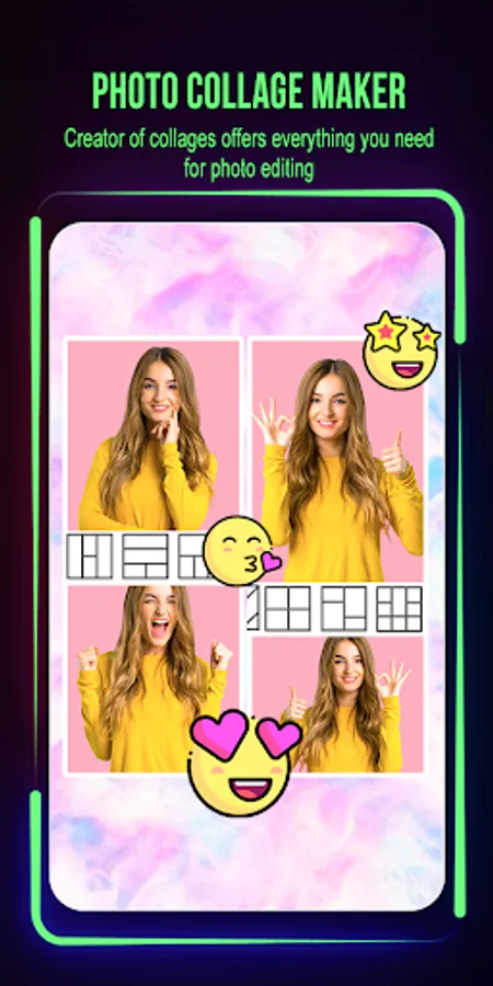Feel free with photo collage maker to give your pictures a different dimension using for that artistic mirror effects and tons of grid layouts to choose.