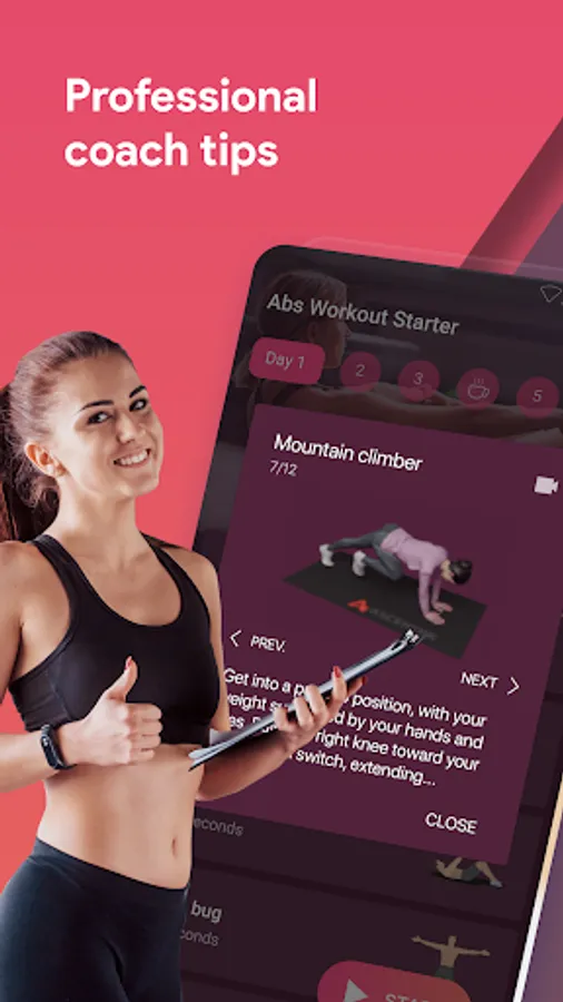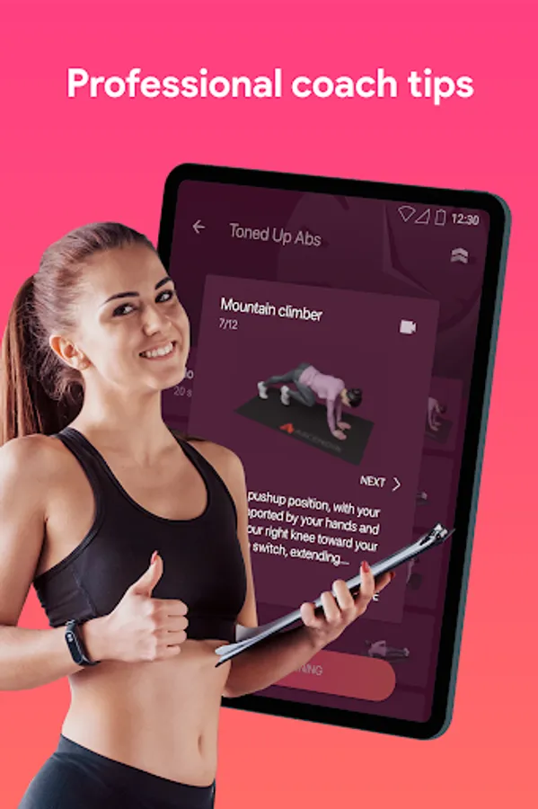 🦸♀️Personal trainer - You don’t need to wonder how to burn belly fat or how to get in shape because this app is all you need to achieve this goal and our virtual trainer is there to guide you along the way. The new fitness tracker for women comes with a coach voice that will count down your abs workout and facilitate the process of sculpting your muscles and abs.
