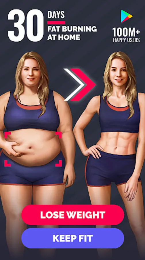 The best lose weight app for women to burn fat and lose weight at home! With simple and effective fat burning workouts for women, you can lose belly fat, lose thigh and arm fat. Follow the 30-day plan and take just a few minutes a day to lose weight and get in better shape!