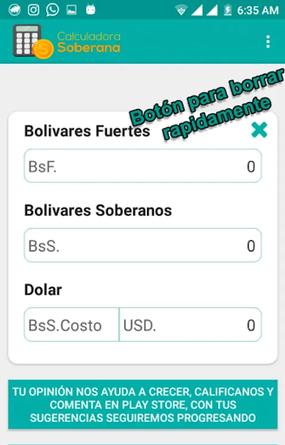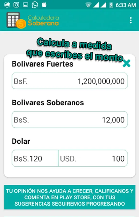 From August 20 comes the monetary reconversion so we bring you an app that allows you to quickly and easily make your changes and calculations from bsF to bsS or inverse facilitating in this way the Venezuelans a quick and easy adaptation, in this way errors or discomforts will be avoided.