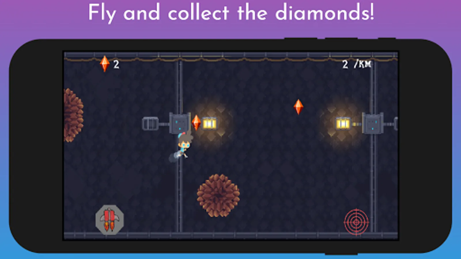 Use the left button to activate the jet pack and let him fly to avoid the golems and worms in the sky!