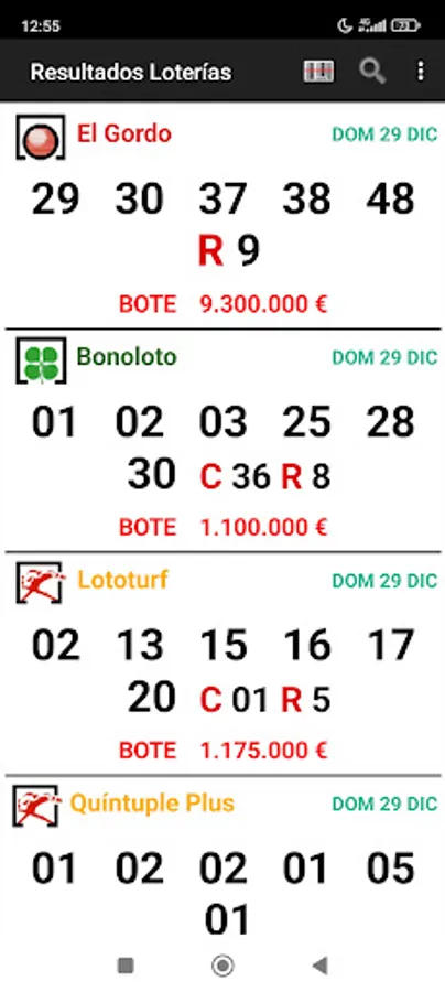 - Any type of content or result offered by our application always remember to compare it with an official SELAE administration or in the official channels available for this purpose