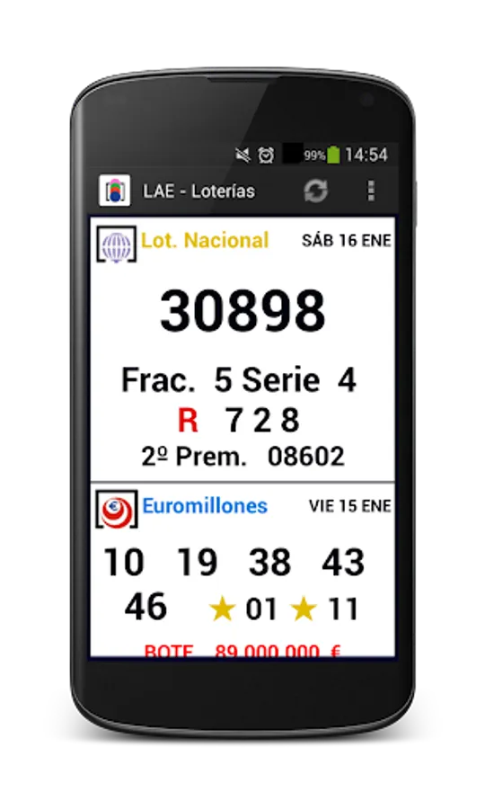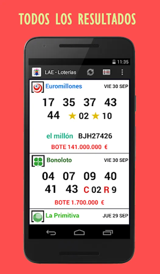 Check the latest draws and results for the all games and draws of Spanish National Lottery. With Speech. Easy to Use and Simple