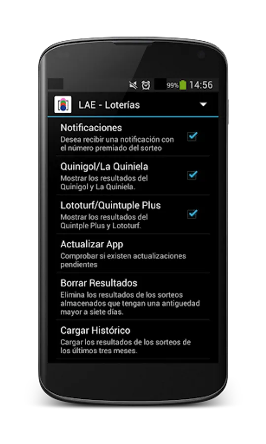 -Notifications: The app will notify you when the latest results are available. Of course, if you don't want notifications you can simply turn them off and check whenever is convenient for you