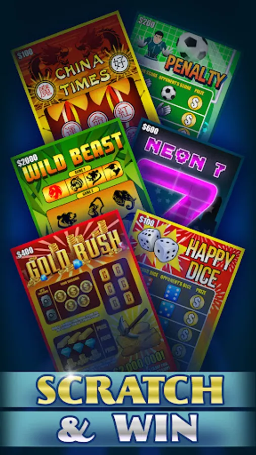7-17-77, Basketball Legend, Car Owner, China Times, Debit Cards, Gold Rush, Happy Dice, Lucky Card, Neon 7, Penalty, Wild Beast, Winner Number and other real scratch off games.