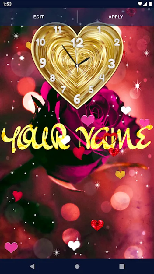 Love Clock Wallpaper ❤️ Hearts 4K Live Wallpaper has multiple love analog clock moving wallpapers with hearts themes, red roses and pink flowers images, sweet love backgrounds, gold heart HD wallpaper, multiple customize options like background changer, frames, animated falling hearts, magic touch, analog clock, emoji, your name and more. The love analog clock best live wallpaper works on the lock screen and the wallpapers are all FREE!