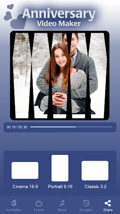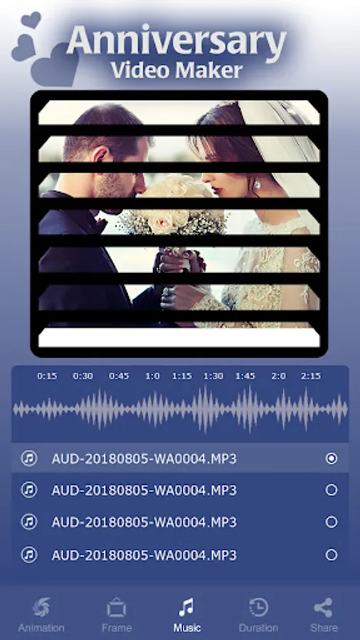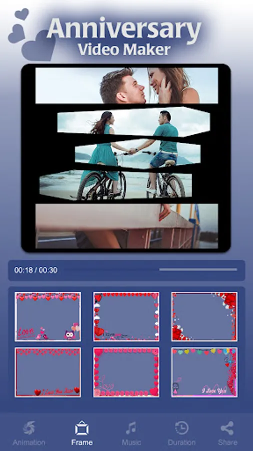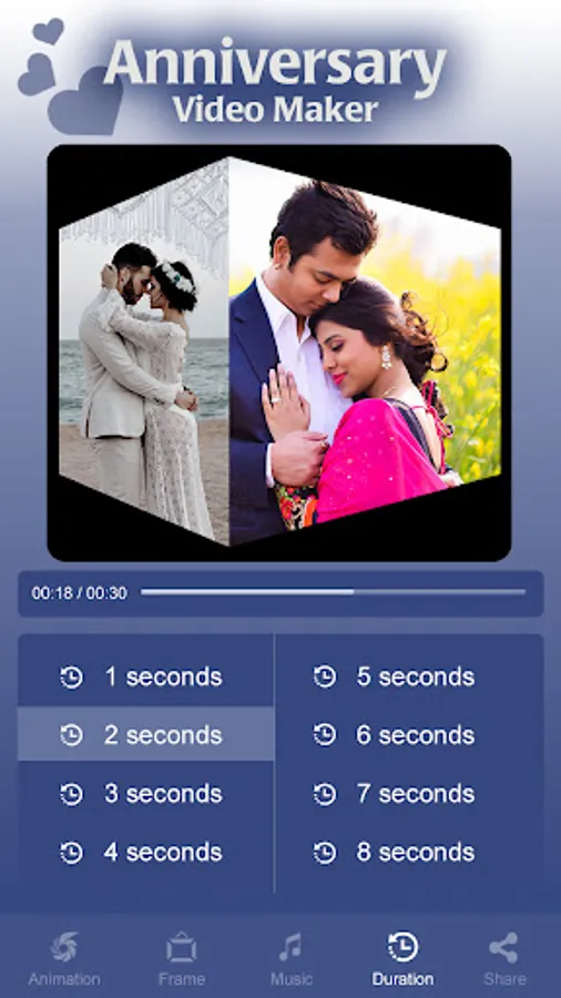 You can add perfect music from your mobile to play along the anniversary video by using this anniversary Video Maker With Song & Music.